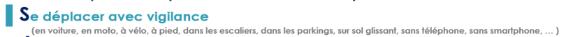 Redoublons de prudence dans tous nos déplacements, sur la route mais également sur nos sites dans les couloirs, parkings, escaliers, …