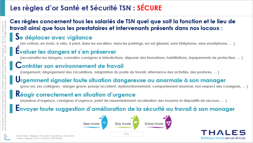SÉCURE : Les règles d'or Santé et Sécurité au Travail de TSN