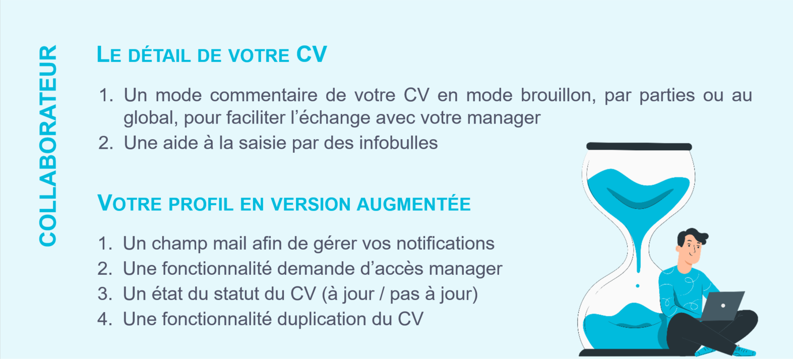 Il appartient à chaque collaborateur de mettre à jour son CV régulièrement – idéalement, en fin de mission, après une formation ou une certification, … nous comptons sur vous !