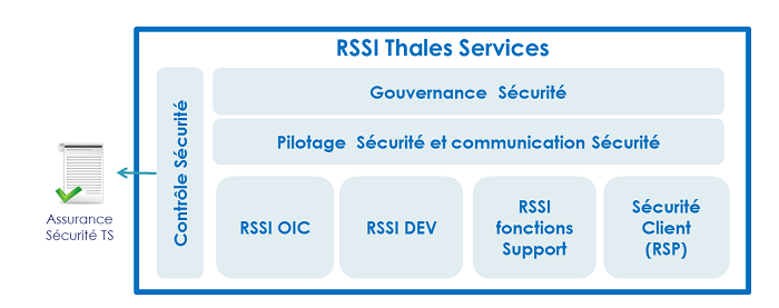 En relation étroite avec la SSI du Groupe Thales, et notamment le RSSI France, le RSSI de Thales Services est responsable, pour le SI de l’Entreprise mais aussi dans le cadre des activités délivrées pour nos clients, de la définition de la stratégie de la sécurité des systèmes d’information, et de sa déclinaison opérationnelle. Il est à ce titre chargé de piloter, de décliner de manière opérationnelle, et de contrôler la mise en oeuvre des différentes Politiques de Sécurité des SI (PSSI) de Thales Services Numériques.