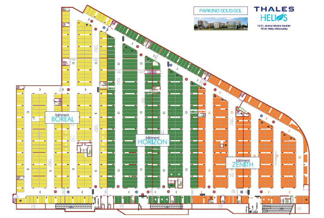 En plus de ces capacités de stationnement prévues pour les collaborateurs basés sur les site Hélios,  le site dispose de places de parkings pour les visiteurs et les stagiaires du Learning Hub.