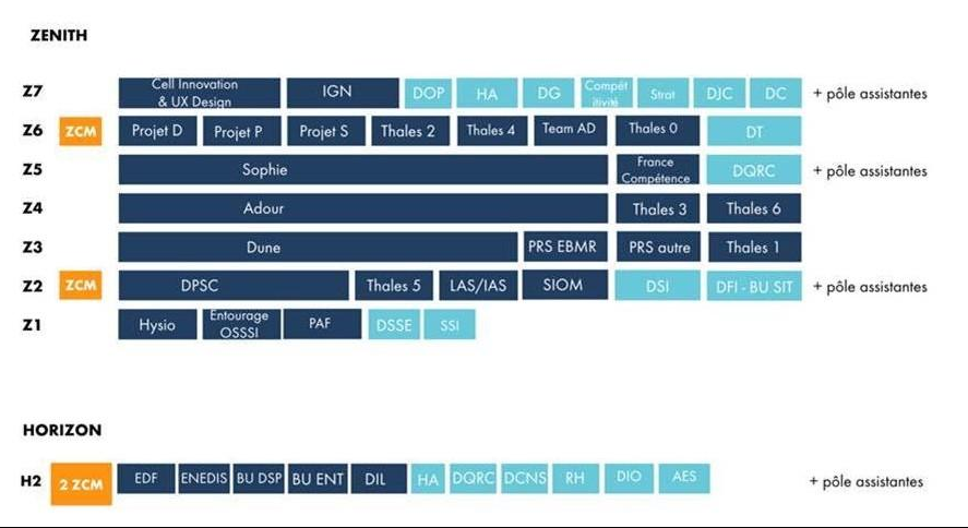 Positionnement des différentes équipes dans les bâtiments :