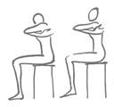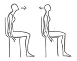3. Redressez-vous Assis, regarder devant soi. Imaginer qu'on fixe une ficelle horizontale au bout de son nez et une autre derrière son crâne. La ficelle est tirée devant : la tête s'avance. La ficelle est tirée derrière, la tête recule. A réaliser 10 fois. |