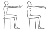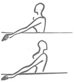 5. Une main qui se promène Bras droit le long du corps. Aller promener la maingauche le plus loins possible vers la droite (si la table n'est pas assez longue, continuer dans le vide). La tête est entraînée vers la droite, mais la fesse gauche reste appuyée sur la chaise. Changer de main, recommencer le tout dix fois. |