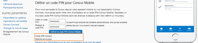 - Etape 5 : après avoir entré votre code PIN, cliquer sur Définir le code PIN Concur Mobile : Attention: le code PIN n’est pas votre mot de passe eDIR et ne doit pas être identique à ce dernier.