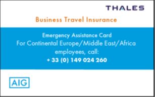 Durant la mission, le salarié est couvert par l’assurance Business Travel Insurance souscrite par Thales.