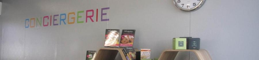 La conciergerie est située au RDC du bâtiment AVENIR face à la section bricolage.